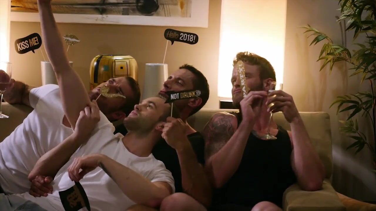 It’s a group of fuck buddies any gay man would want to spend New Year’s Eve with: Tryp Bates, Shawn Reeve, Nick Capra, and Jackson Radiz. These four guys carry on with a fun and personal New Year’s celebration, and when the clock strikes midnight Tryp and Jackson drop to their knees and begin sucking on Nick and Shawn’s cocks to celebrate 2018. Jackson and Tryp both love the feeling of having their asses stretched by a top cock penetrating them bareback, so Shawn Reeve and Nick Capra take turns hammering their asses until their shoot their loads! - Tryp Bates, Shawn Reeve, Nick Capra, Jackson Radiz