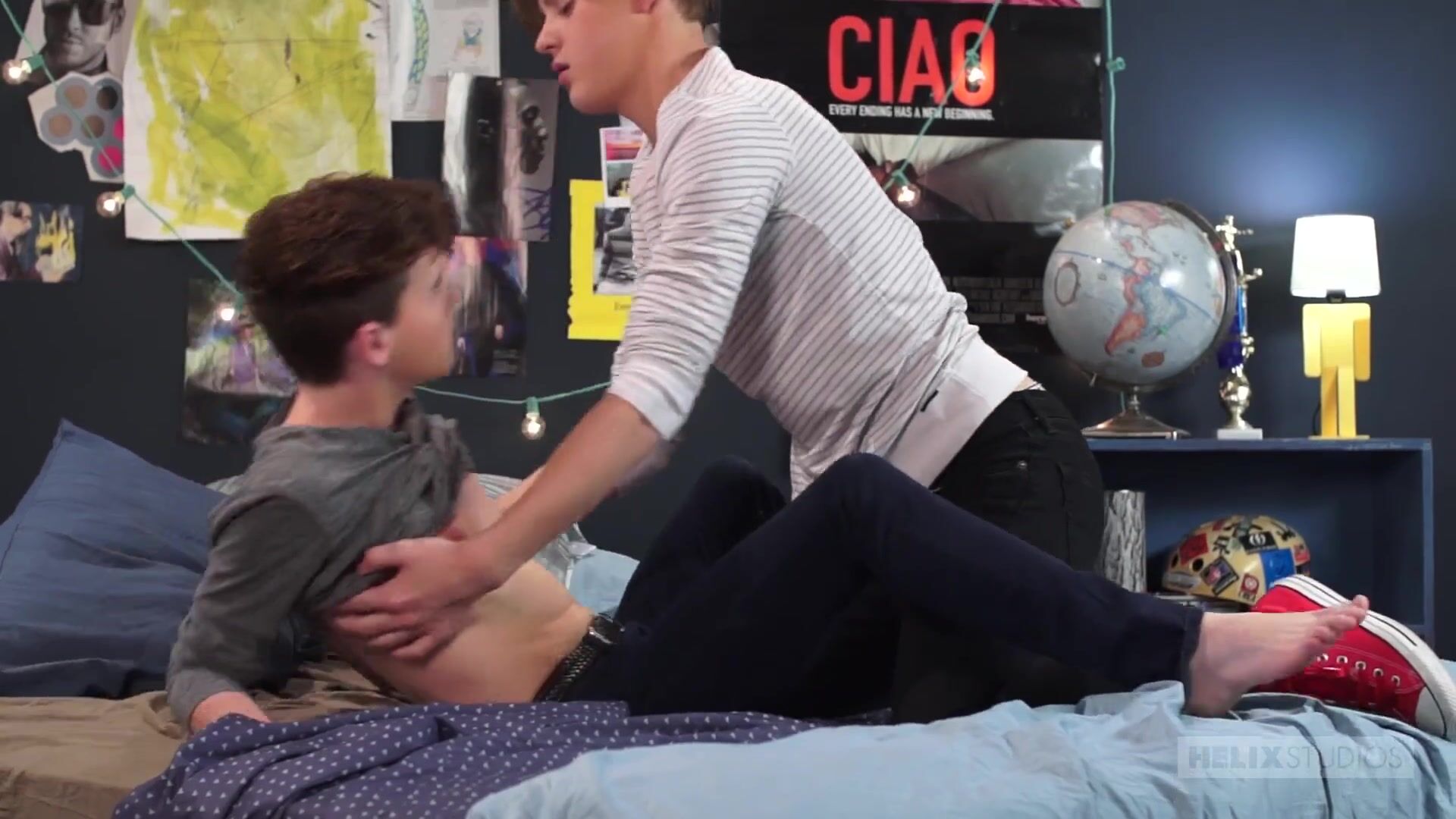 We always like you to get to know our newest shota better. Today we sent pretty boy Wes Campbell in to explore the mind and the body of 18 year old super cutie Hunter Graham. We find out our fresh meat is in college and also about his coming out experience as well as his favorite movies. This IS Helix after all so naturally the conversation gets into sexy territory and the shota discuss porn, sex and ALL Hunter's likes and kinks! This of course leads the shota to the bedroom where a steamy hot make out/ strip session goes down. Our newbie sucks cock like a pro and Wes welcomes him with a gorgeous knob gobble! The tiny twink has a surprisingly large package! Wes wets his ass appetite on Hunter's smooth hindquarters by lifting the teens's ass in the air to his wet and waiting mouth! #HOT Hunter slaps some lube on his hole and rides Wes bareback like a cowboy as he spanks his rock hard schlong. Wes even gets in a couple spankings and our newbie is very verbal for being so young; your ears will be happy. Campbell's Cali surfer boy hair dangles in his face as they switch positions so he can plow the teens even harder. Hunter's hard on seems to be stretching even longer and it lets off some steam all over his beautifully smooth 18 year old tight belly! He's able to keep Wes inside for a bit before the pretty top pulls out and blasts the child like a firehose! They end with a kiss. Welcome to Helix Hunter! - Wes Campbell, Hunter Graham
