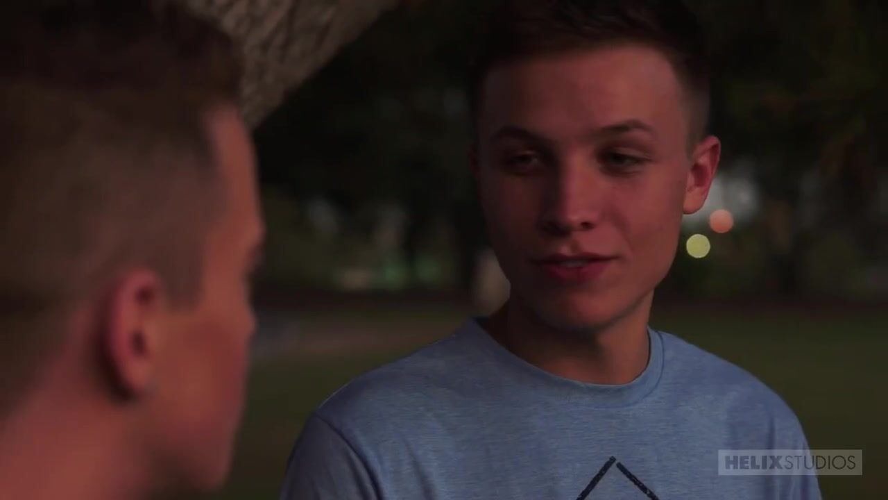 Jocky, cocky and newly tattooed Jacob Dixon has been layin' low in Texas for two years but the call of the lime light and the love of cock has beconed him back to Cali to film a few scenes for Helix! New generation Brad Chase gets the honor of welcoming the veteran back to the fold and there's definitely fireworks from the get go! Brad hasn't heard of Jacob and this does NOT sit well with Mr. Dixon; but no matter, he knows he'll get the chance to have his revenge on the newbie's tight little ass. Outside Brad has been asking the questions, but back in the studio the O.G. takes control. Showing dominance from the start taking Brad's shirt off FOR him, he takes control from there. HOT. It's not hard to see how Jacob got his last name. With his massive cock, a reference to DICK needed to be honored. That definitely deserved to be in lights. Brad laps up the long Dixon and is at it's mercy from there on out. Reminding Brad who's boss, Jacob turns him around and goes to town; spitting in there for good measure. In matching with his take no prisoners attitude Jacob drives his Dixon in bare back, hard and quick. Building up speed pretty fast, it isn't long before he's pummeling Brad with two years of pent up angst. HOTTER. Watching new generation Brad bounce on O.G. generation Dixon is pure poetry in motion. Once Jacob gets Brad on his back the Chase is over. Shooting past his belly button in volcanic like spurts Brad is convinced this old dawg has definitely learned a few new tricks in his time away. Putting the cherry on top of this terrific fuck-fest, Mr. Dixon lays down a delicious cream pie marking his territory once again. HOTTEST.