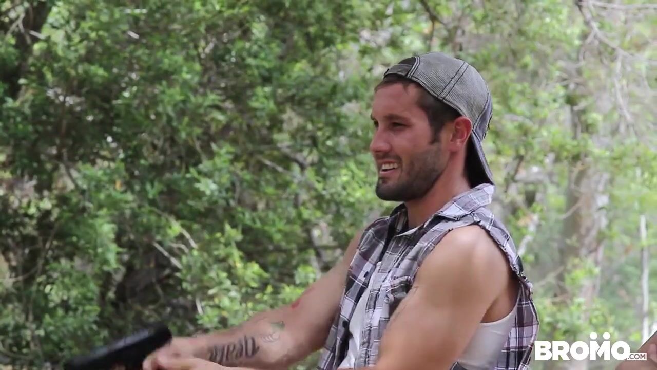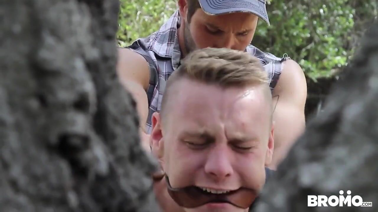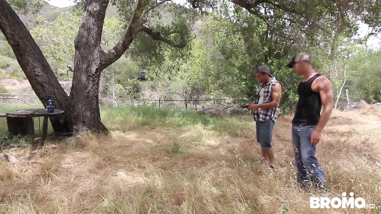 When Jeff Powers and Brandon Evans get bored at the trailer park, they decide to go shoot some cans out in the field. This wasn’t enough to suppress the boredom, so Jeff buries his massive uncut cock inside Brandon’s pretty mouth, and starts throat-fucking him. Brandon’s so good at sucking his big dick that Jeff rips off his jeans and starts banging him bareback on a tree stump. These two look so hot fucking each other that you’ll want to play this scene on repeat.