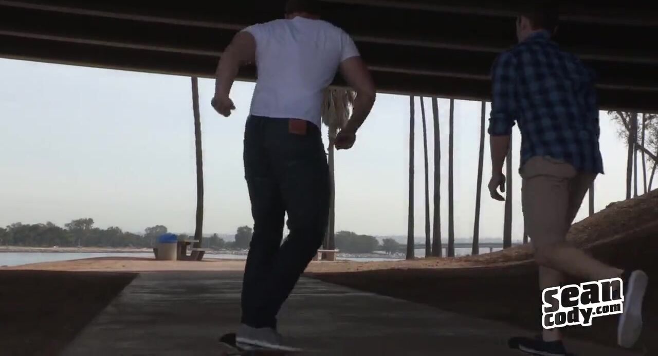 Sean and Wilson are both into different kinds of physical activities, so we went skateboarding to see them in their element. Wilson was having a bit of a hard time since he’s used to longer boards. “Does size really matter?” We asked him. “Size really does matter. Don’t listen to what people tell you.” We all laughed. You could tell he was eager to be alone with Sean. Little did Sean know that it would be Wilson’s first time putting a dick in his mouth. What better way to start dick-sucking than with Sean and his big dick? “I’m very happy I was your first.” Sean seemed honored.
