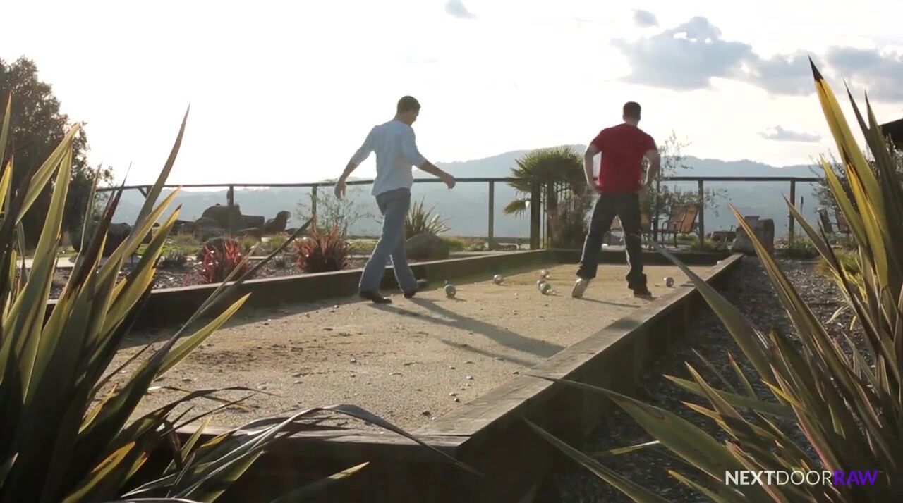 As Bridger Watts surveys the property of his old high school buddy, he tries not to think about his impending divorce or the problems he's having at home. Thankful that Quentin Gainz is letting him crash for a few days, Bridger stands in the shower letting the water drip down off face as he contemplates his next move. Quentin happens by the restroom and catches a glimpse of Bridger standing still, statuesque in movement but also in appearance, and Quentin feels a mixture of sympathy for his friend, but also lust for the sight in front of him. As he rummages through the refrigerator, Quentin doesn't hear Bridger creep up behind him and lightly touch him on the stomach. Startled, Quentin turns suddenly to find Bridger standing in his towel. Bridger asks him if he always spies on men in the shower or if it's just him, and Quentin replies that he's never done it before. With that, Bridger pulls Quentin in closer and the two embrace, passionately, as Bridger lets his towel fall to the floor. Moving into the bedroom, Quentin pushes Bridger up against the wall, running his hands along Bridger's chest, before Bridger throws Quentin back onto the bed, inching from his mouth down his body to Quentin's cock, which Bridger swallows whole, downing Quentin as he gets hard as a rock. Bridger deep throats his host before they switch, and it's Quentin's turn to show what he's capable of, as Bridger grabs the back of his head and pushes Quentin down further onto his cock. WIth his raw cock hard and ready for some action, Bridger asks Quentin if he's ever taken it bareback, and Quentin replies that he's never taken it period. Bridger gets a smile on his face as he plunges his cock deep inside his friend's ass, and Quentin shivers as Bridger pushes inch by inch, deeper and deeper. Bridger pounds Quentin's ass from behind, raw dogging him from behind, first in doggy and then again as Quentin rides him reverse. Bridger can't help but fall for Quentin's tight little ass and his uncanny ability to take the dick, and since it's been a while since he's been laid either way, he's ready to burst, but first, he turns Quentin over and pounds him in missionary as Quentin strokes his cock. Bridger pulls out and blasts his host with a facial load as Quentin spits his own load all over himself in a bro-tastic finish that does not bode well for Bridger's (soon to be) former wife.